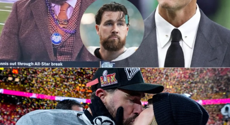 In an unexpected turn of events at a recent roast, NFL legend Tom Brady took a playful yet pointed jab at Kansas City Chiefs’ star tight end, Travis Kelce. The roast, known for its sharp humor and candid jests, saw Brady suggesting that Kelce’s focus on his high-profile relationship with pop icon Taylor Swift might have been the reason the Chiefs fell short of securing a third consecutive Super Bowl win, or what’s colloquially known as a ‘3-peat’. Brady, with his characteristic wit, remarked, “If Travis had focused more on football than on Taylor Swift, maybe that 3-peat would have been a success.” This comment, while delivered in the spirit of humor, ignited a firestorm of discussion among fans and analysts alike, questioning the balance between personal life and professional sports.